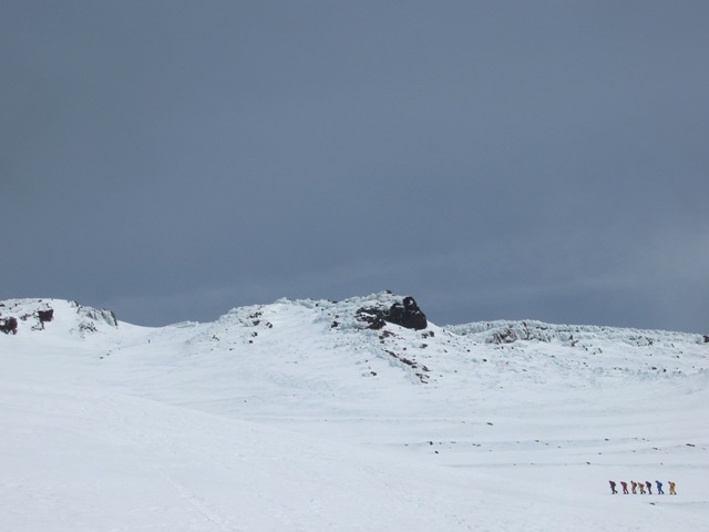 12名中9名は9合5尺まで到達しましたが、自らの足で登ってきたからこそ、眼前に迫るように見える、氷に覆われた山頂の様子から、それぞれ何かを感じたのではないかと思います。