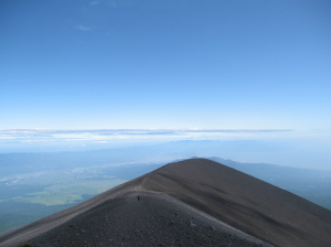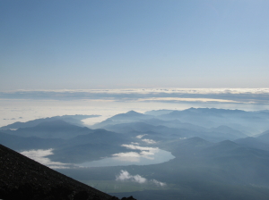 夏は南風に乗って、富士宮ルートでは下から雲が上がってくることが多いですが、