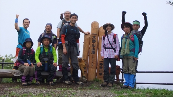 右の赤ボールペンが指している方向(右斜め上)に、大野山の山頂があります。