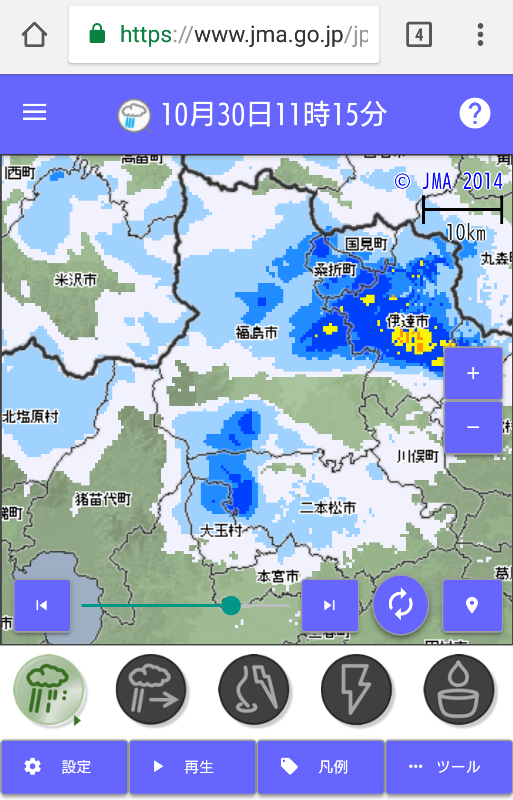2. 【気象庁レーダーナウキャスト】http://www.jma.go.jp/jp/radnowc/(無料)