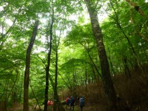 一合目から登ることによって味わえる醍醐味のひとつは、苔が生したミズナラの巨樹に象徴される、この自然を歩くことである。