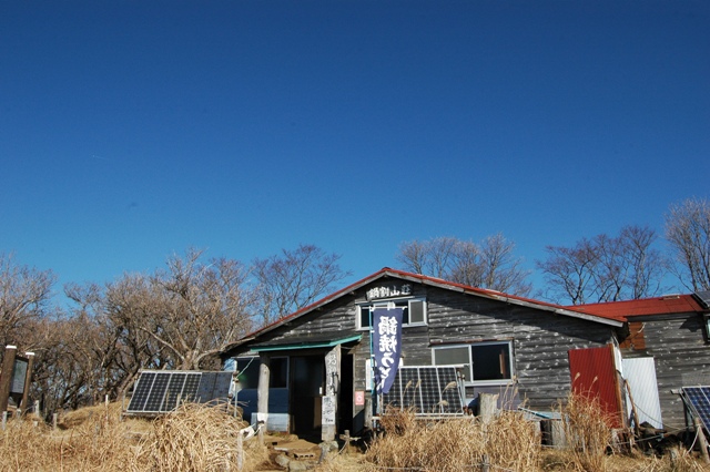 鍋割山荘前には鍋焼きうどんの幟がはためいています。