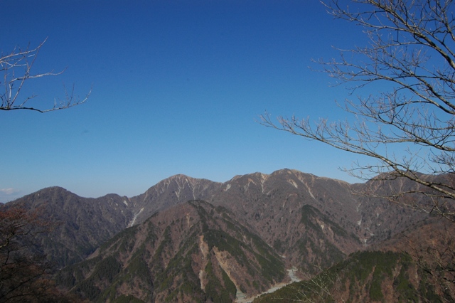 稜線から北側を見ると、臼ヶ岳、丹沢最高峰の蛭ヶ岳、棚沢の頭、不動ノ峰、丹沢山と続く、丹沢主脈の山々が青空のもとに一望出来ました。
