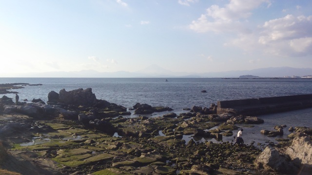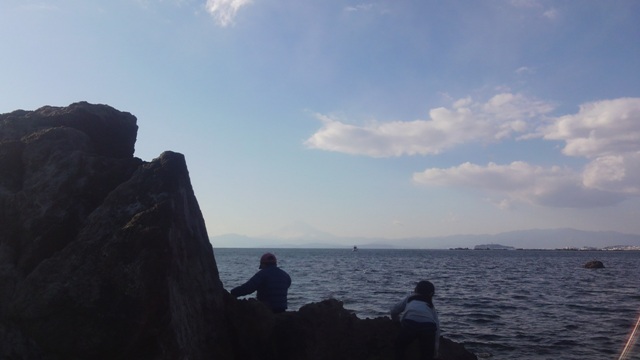 磯の先端まで行って、富士山と対面!(上の写真の方が見やすいかな?・・・)