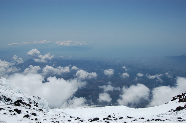 右側のお鉢(火口)の中もたっぷり雪があります。