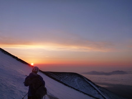 登山開始の頃にちょうどご来光が見れました。