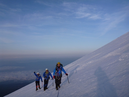 ※ザイルで結びあって登ること。ちなみに下りも山頂から9合5勺まではアンザイレンをして下りました。
