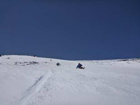一日の中でも気温変化があるので、日中雪が柔らかくて、簡単に登れても、午後遅くなり、気温が低下し、下山時に雪面がアイスバーンになることがあります。