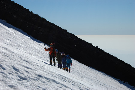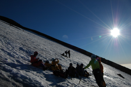 夏の富士登山を実施している大学や高校はいくつもあると思いますが、残雪期富士登山を実施しているのはおそらく唯一の試みです。