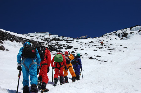 1合目から登った年もありましたし、5合目から登ってもタイムリミットや、アイスバーンの影響で、8合目や9合目で下山することがほとんどでした。