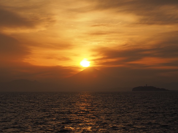 4月中に三浦半島にお越しの場合は、天気が良ければ日没の時間、西の空、富士山に是非注目してみて下さい。