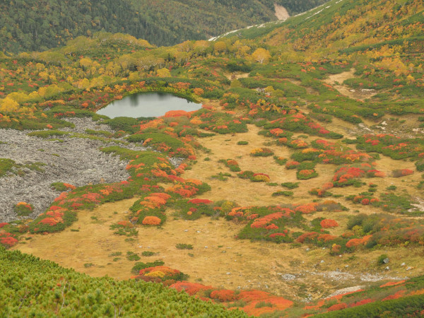 野口五郎岳直下の五郎池周辺の紅葉、登山道がないんだけどいつかあそこに行ってみたいなぁ。