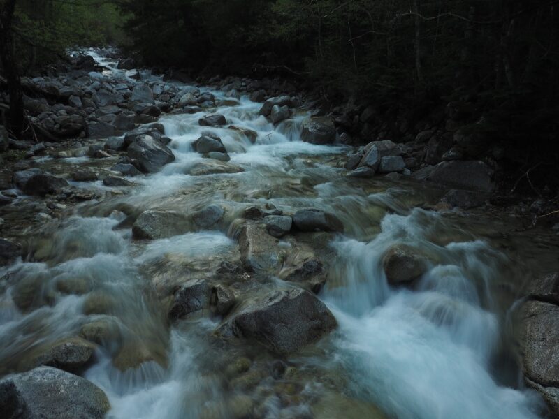 上高地-横尾間の移動中も、雨が降ったり、アラレ雪が降ったりという天気でした。