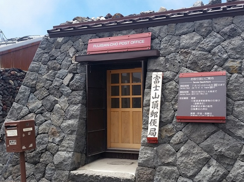 浅間大社の改修工事に伴い、銀命館で仮設営業を行っていた富士山頂郵便局が、今夏から元の場所である奥宮拝殿横に戻りました。
