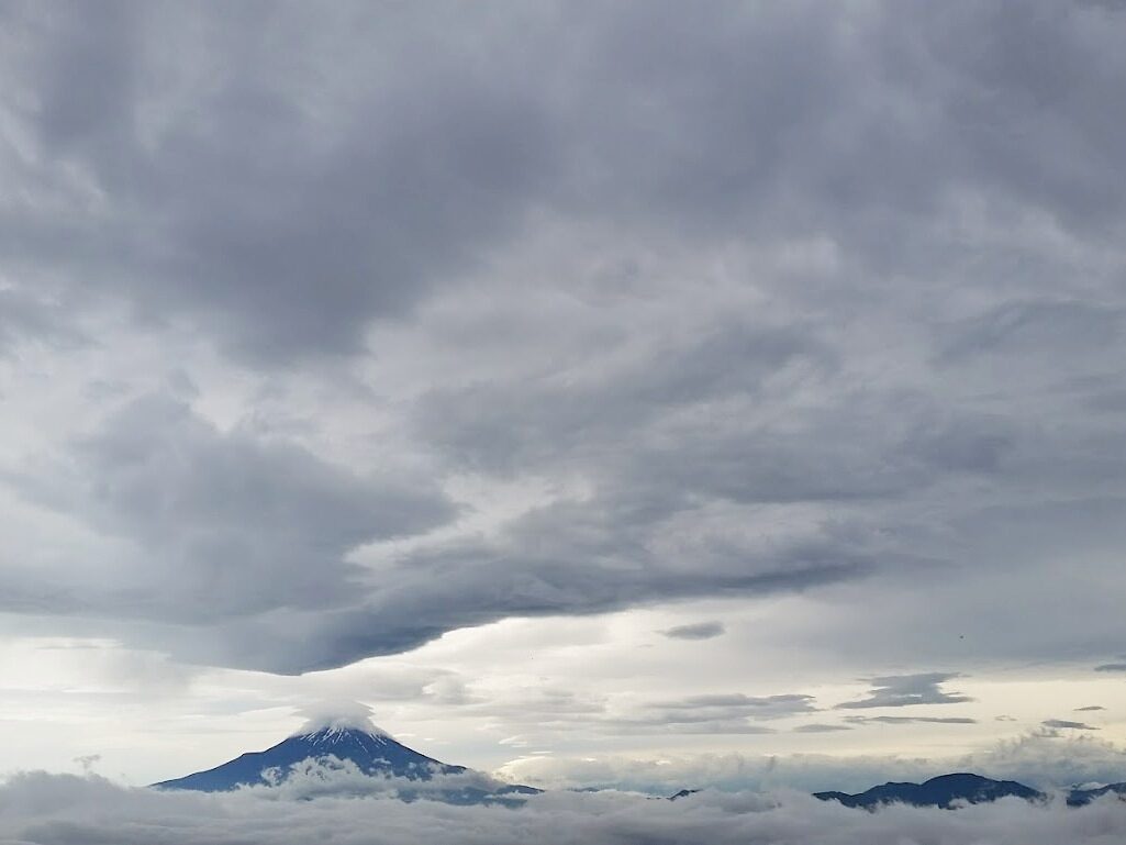梅雨時の撮影だったので、「いやーさすがに山頂から富士山は難しいと思いますよ」なんて言ってたのですが、山頂に着いたらどんどん雲が晴れてきて、ダイナミックな富士山の姿が!