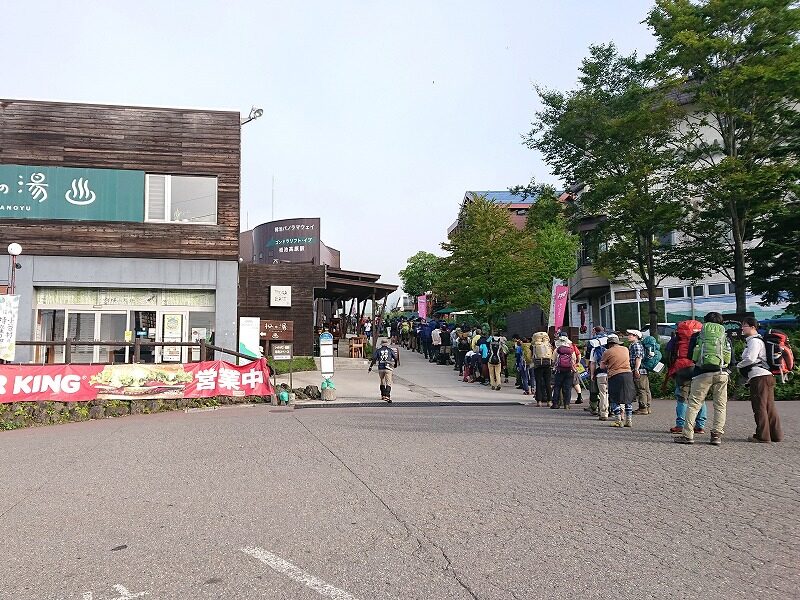 初日8月11日の朝6:30のロープウェイ前、チケットを買うための登山者の列がずらっと並んでいました。