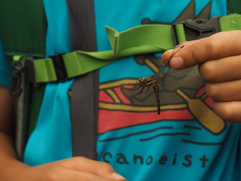 熱中症には気を付けて水分補給を小まめにとりながら、途中でトンボを捕まえてみたり、水場で癒されたり、「しりとり」で気を紛らわせたりしながら、休み休み登っていきます。