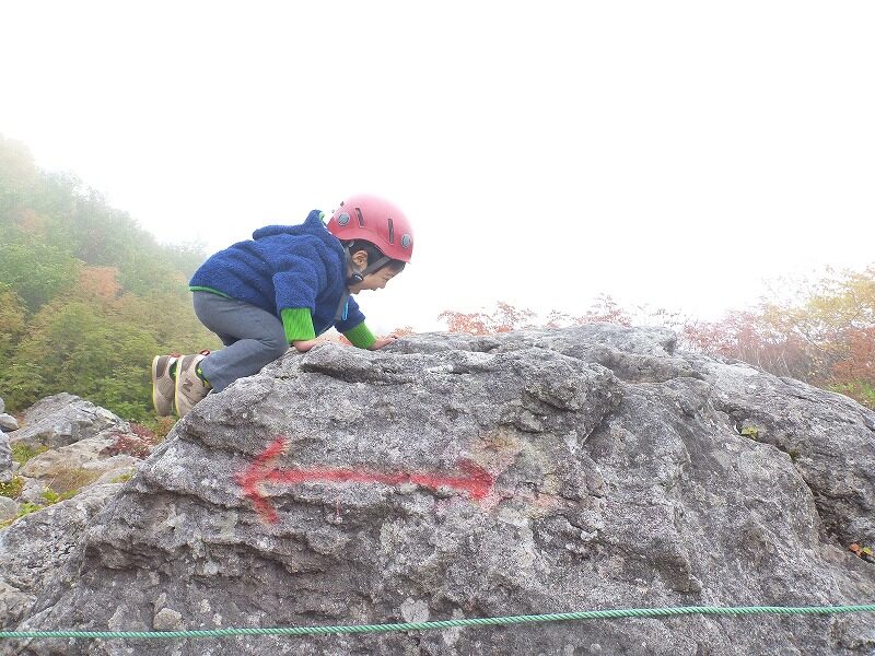 もちろん、当時の息子は背負子で背負われただけで歩いていませんが、この時に登った岩に、この時も登ってもらって記念撮影。