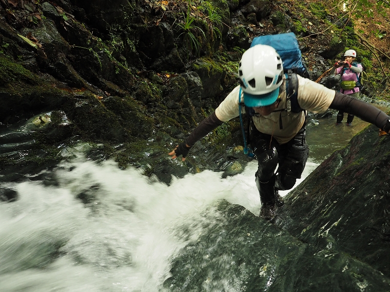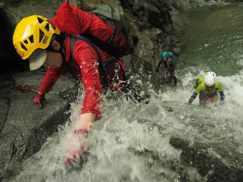 登山道を歩くのとは異なり、水の流れや岩の形など踏み出す一歩一歩の環境が刻々と変化していきます。