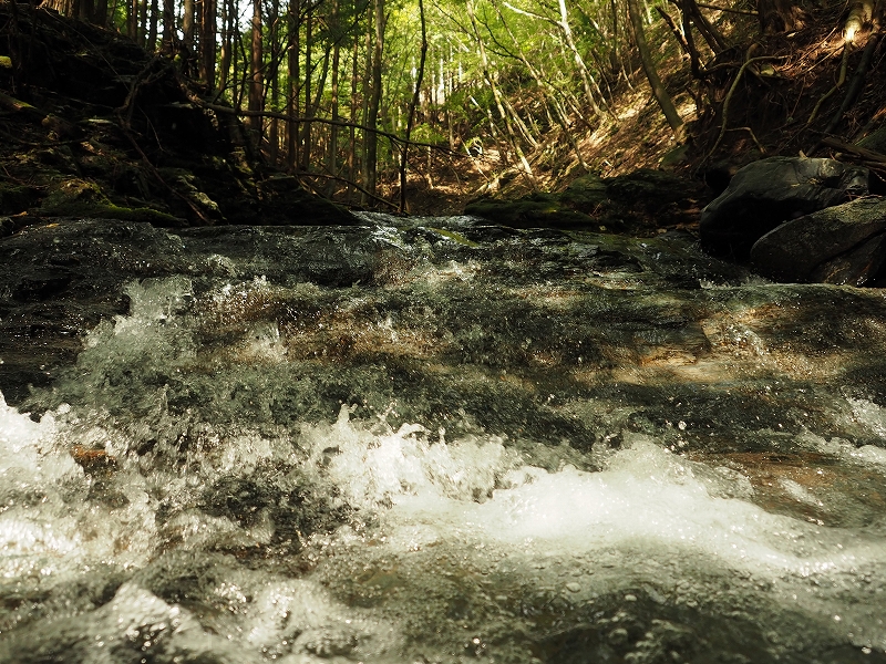 あえて、水の流れに逆らって沢を遡る。