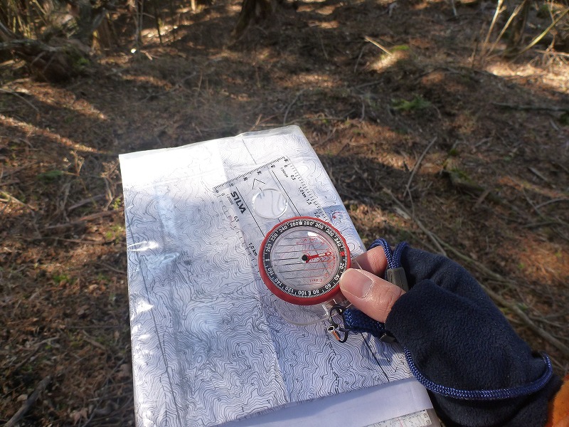 - 目標地点の磁方位を確認して歩く