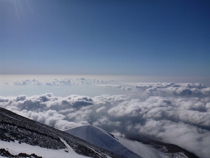 4-5月は厳冬期よりも天候が安定しますが、富士山に最も積雪が積もっている時期でもあります。