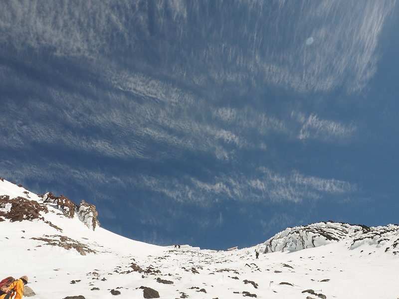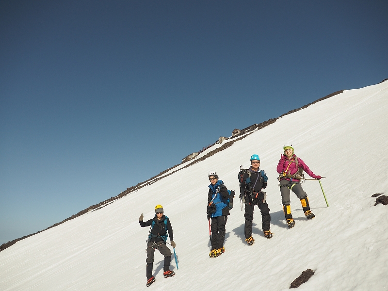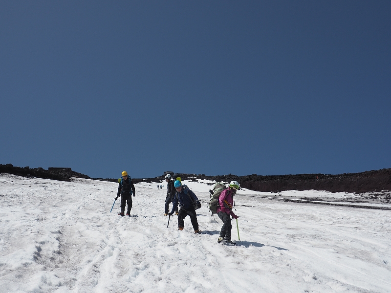 1日目は翌日の登頂に備えて、6~7合目付近で雪上講習を行います。