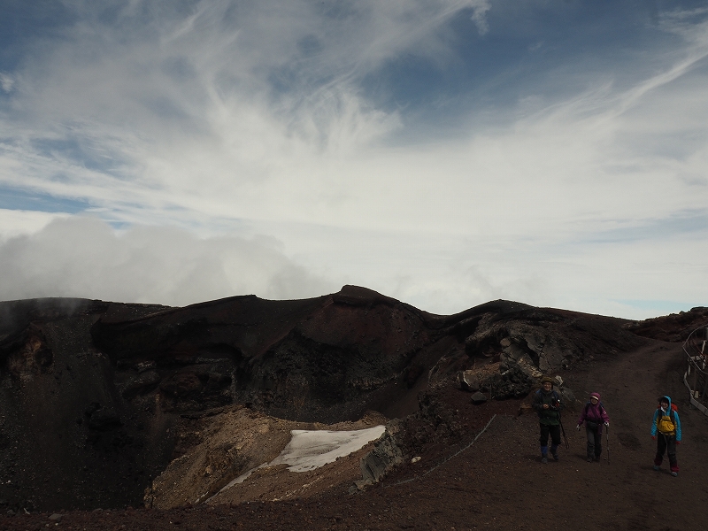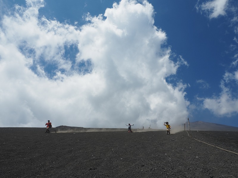 そして、登りは宝永火口の横を通って富士宮口登山道を経由、下りは御殿場下山道を経由して大砂走りを下ります。