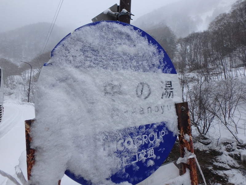 雪が少ない場合行動に時間がかからず13時に下山できる場合もあります。その場合は1本早いバスに乗り、早く解散となります。