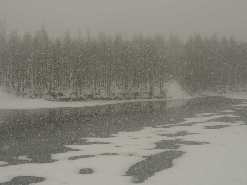 基本的には樹林の中の道を歩きますが、冬季ですので吹雪いた場合は、標高1,500mの冬の寒さとなります。