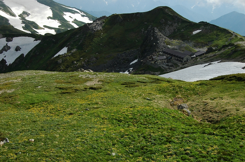 稜線直下に立つ白馬岳頂上宿舎