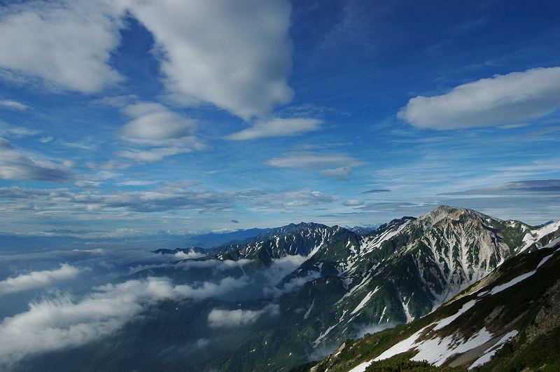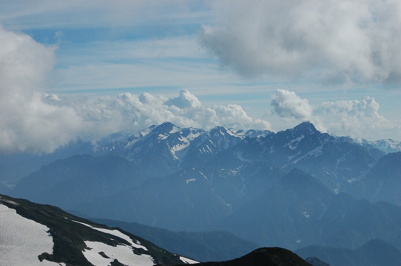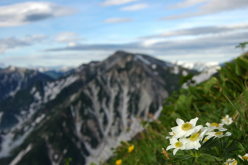 大雪渓を登って、展望と高山植物の稜線へ