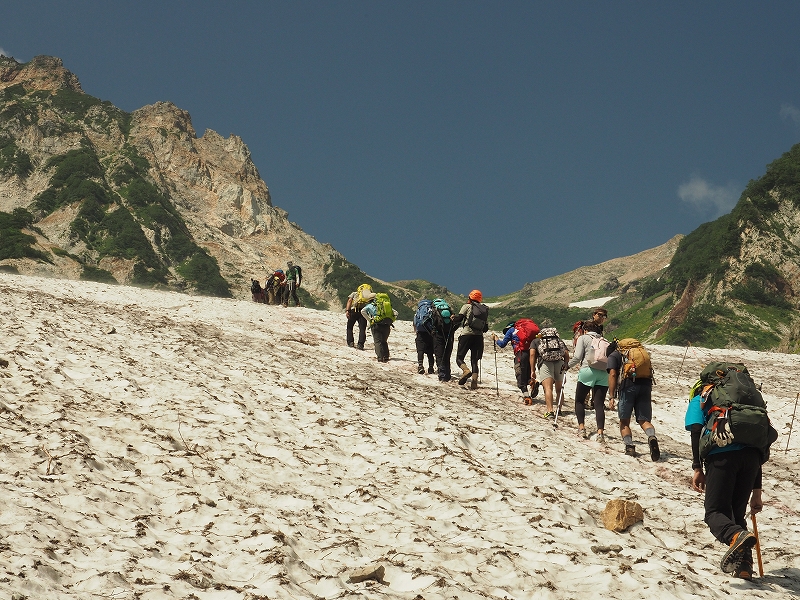 雪渓歩きや落石対策など安全管理についてもレクチャーします