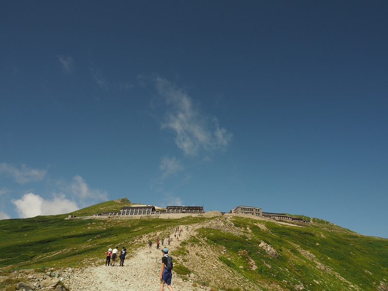 白馬岳山頂まで35分、稜線直下に立つ、白馬岳頂上宿舎。