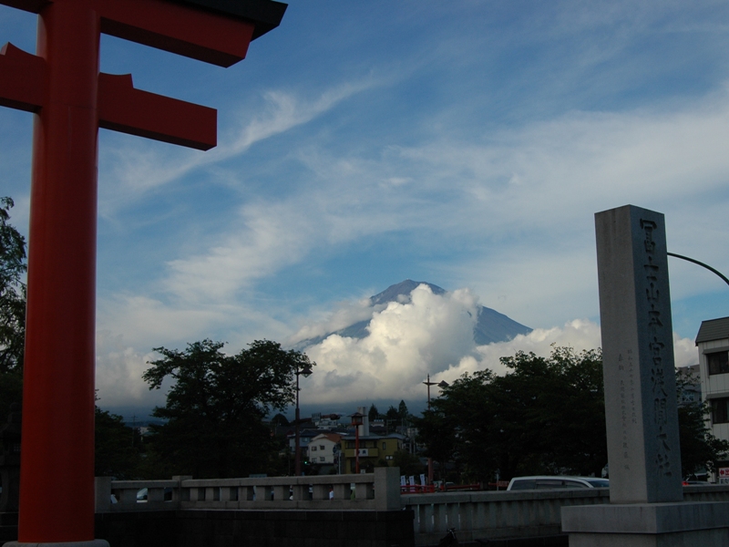 富士山本宮である浅間大社に参拝し、境内の湧玉池の湧き水で身を清め、富士山を目指します