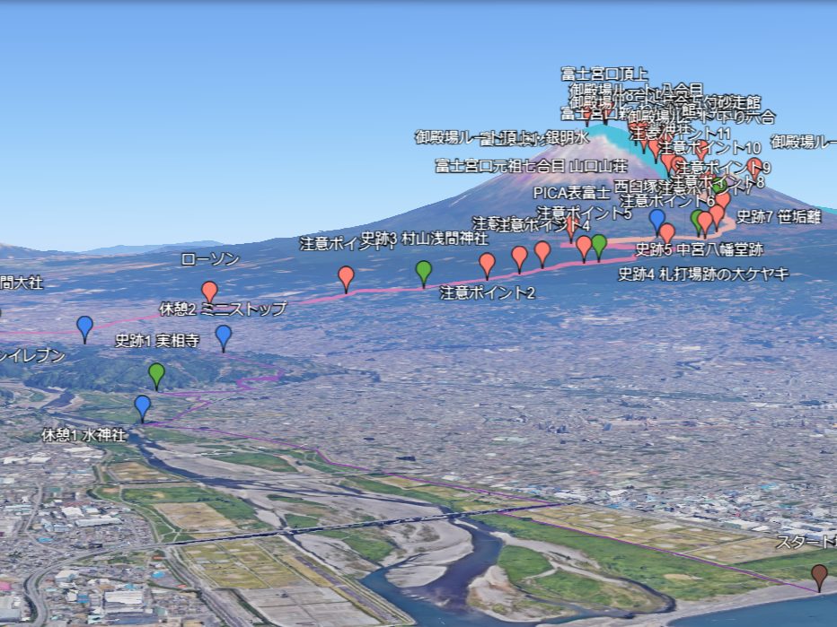 西国から東海道を移動し、富士川を渡ってから富士山へと至る、古来からの巡礼路を資料を元にルートを再現しました