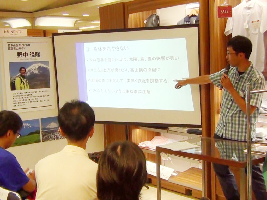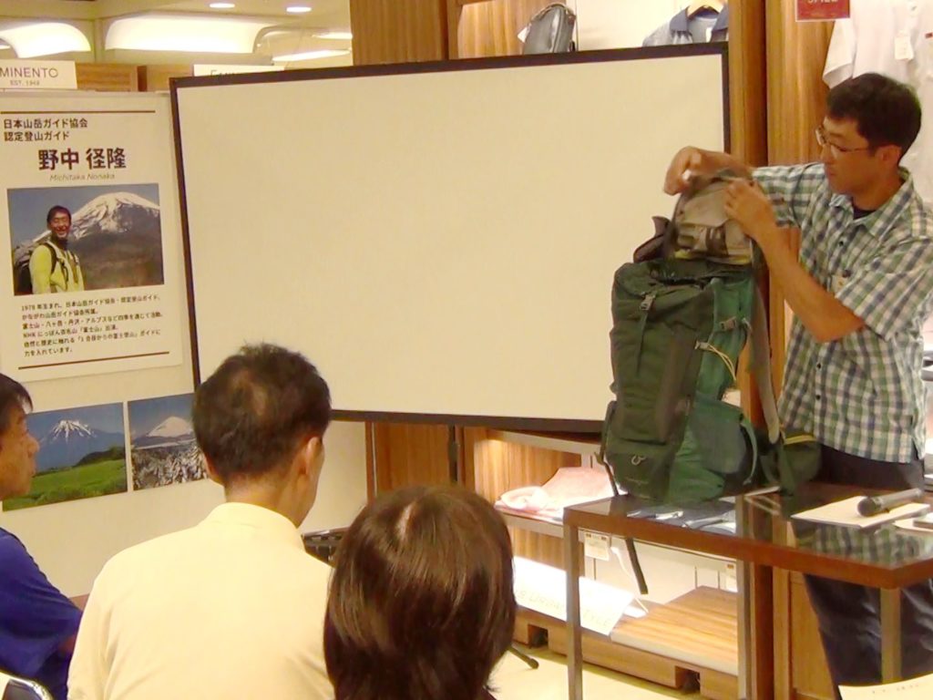 また、講習会後(16:45以降)に、近隣の登山用品店にて山道具・ウェア選びの相談(有料)に応じます。