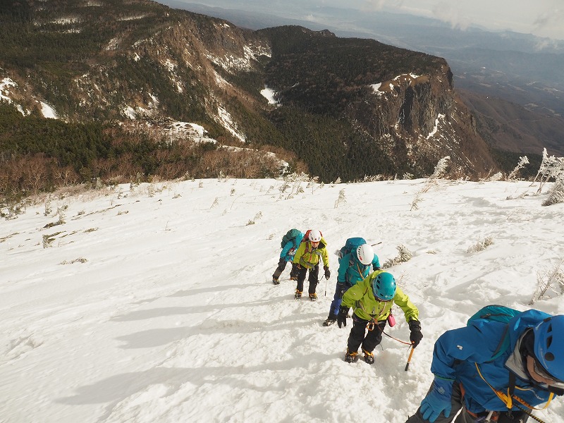 無雪期に山の歩き方講習会で長年にわたって指導してきた歩行技術指導に基づき、雪山で安定して歩くための指導は欠かせないと考えています