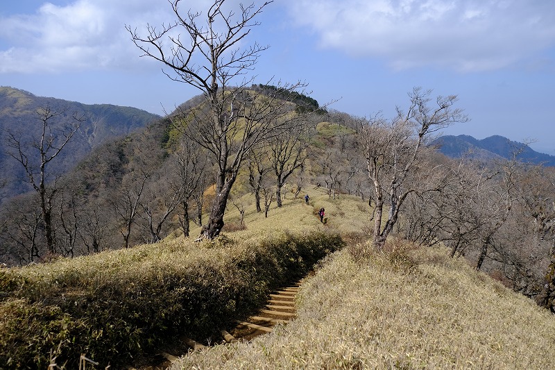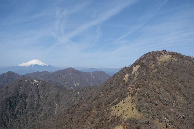 風雪に耐えて稜線に立つブナの木々、丹沢を象徴する笹原の稜線、変化に富んだ景色や展望を楽しみつつ、1日の登山では体験できない標高差を登り下りしていきます