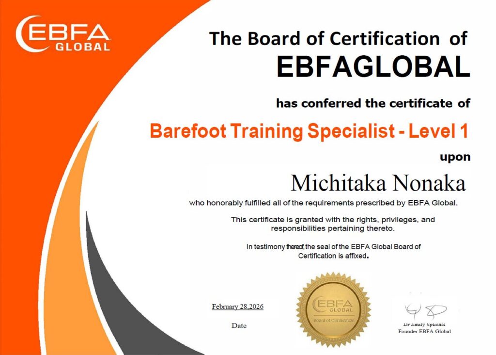 Barefoot Training Specialist レベル1(Evidence based fitness academy)